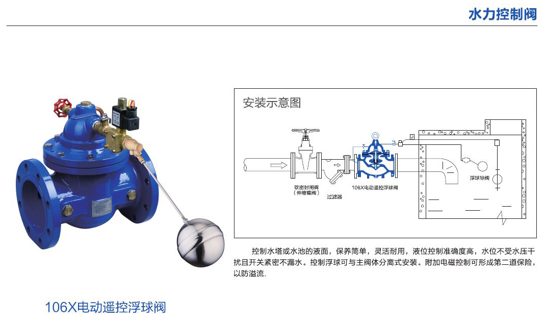 - 控制水塔或水池的液面,保養(yǎng)簡(jiǎn)單,靈活耐用,液位控制準(zhǔn)確度高,水位不受水壓干擾且開關(guān)緊密不漏水。