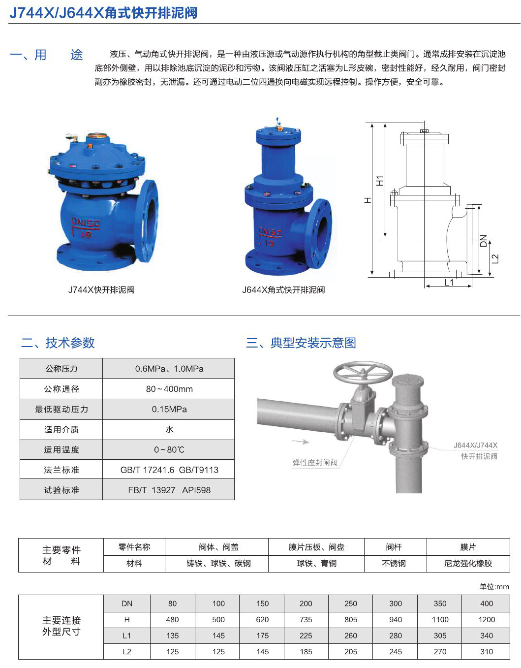 - 液壓、氣動角式快開排泥閥,是一種由液壓源或氣動源作執(zhí)行機(jī)構(gòu)的角型截止類閥門。