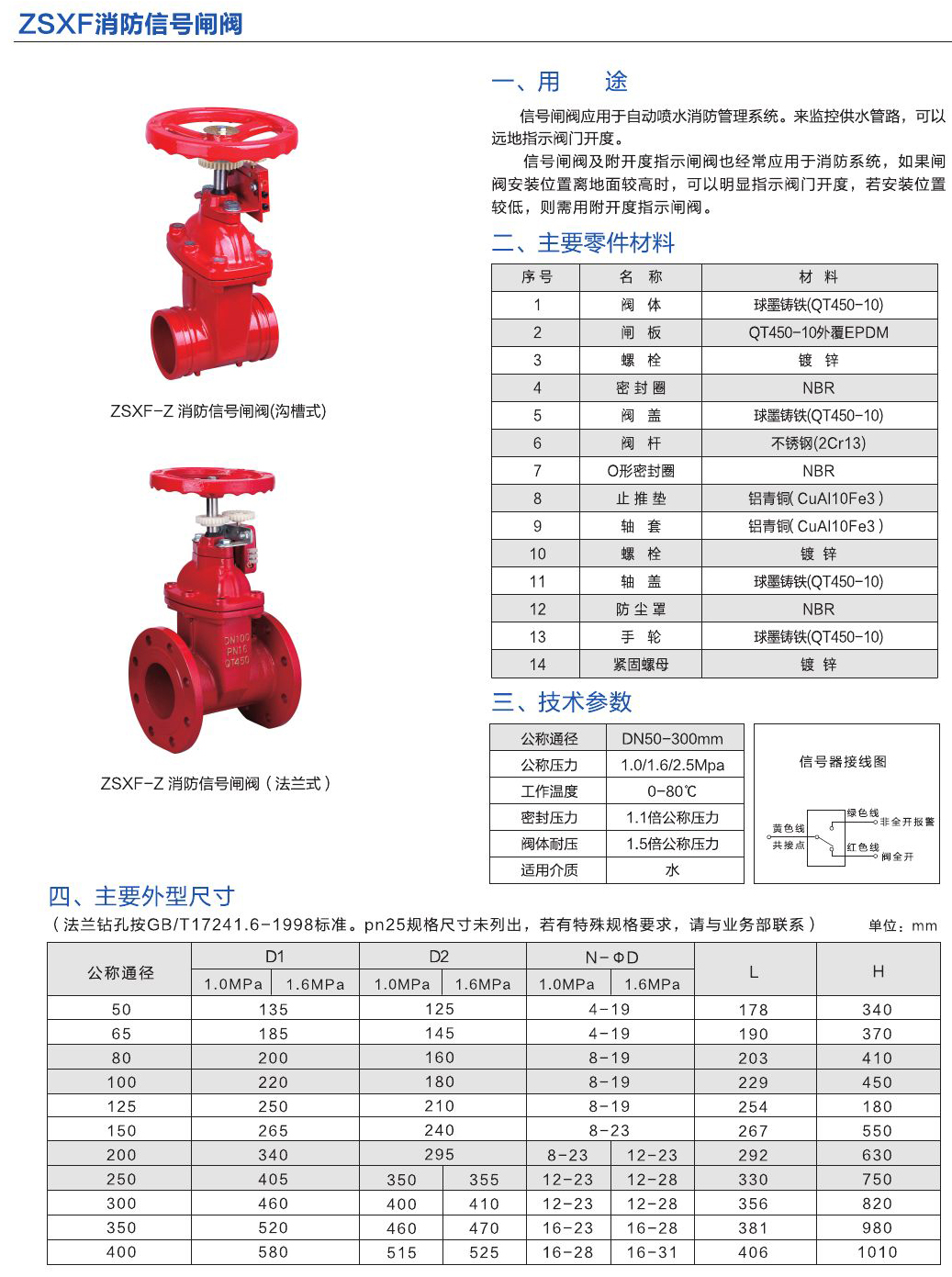 - 信號閘閥應(yīng)用于自動噴水消防管理系統(tǒng)。來監(jiān)控供水管路,可以遠(yuǎn)地指示閥門開度。