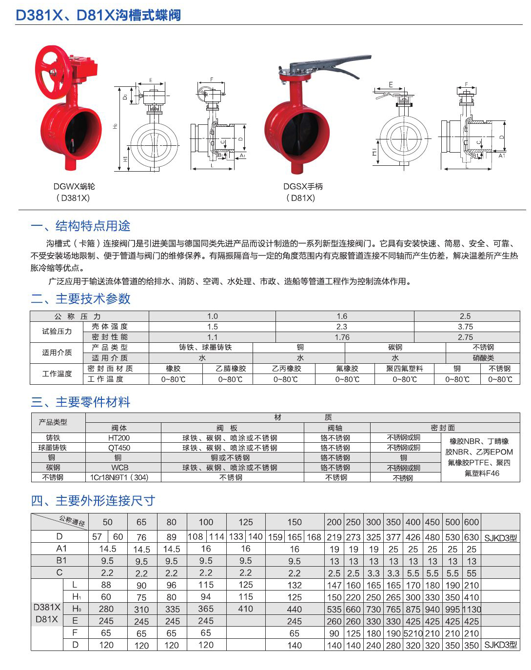 - 溝槽式(卡箍)連接閥門是引進(jìn)美國與德國同類先進(jìn)產(chǎn)品而設(shè)計制造的一系列新型連接閥門。它具有安裝快速、簡易、安全、可靠、不受安裝場地限制、便于管道與閥門的維修保養(yǎng)。有隔振隔音與一定的角度范圍內(nèi)有克服管道連接不同軸而產(chǎn)生仿差,解決溫差所產(chǎn)生熱賬冷縮等優(yōu)點(diǎn)。