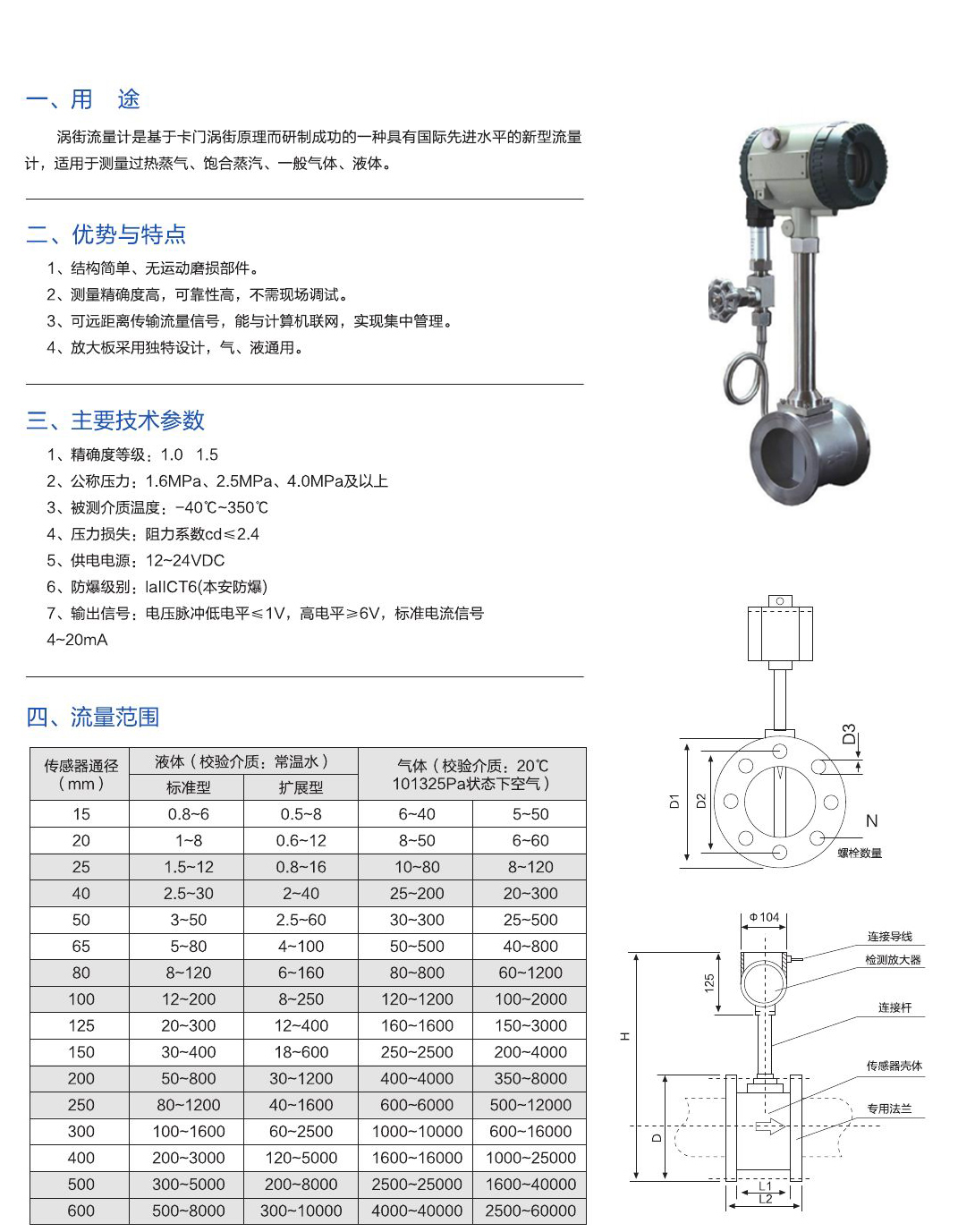 - 渦街流量計(jì)是基于卡門(mén)渦街原理而研制成功的一種具有國(guó)際先進(jìn)水平的新型流量計(jì),適用于測(cè)量過(guò)熱蒸氣、飽合蒸汽、一般氣體、液體。